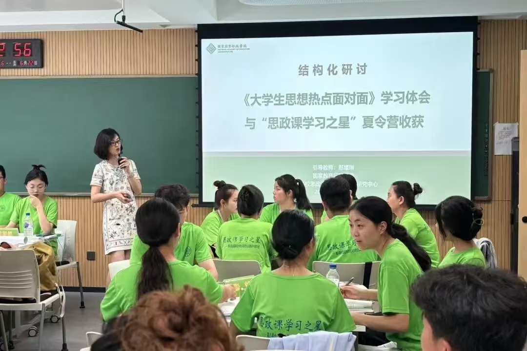 专题讲座紧扣时政热点,结构化研讨碰撞思想火花。7月27日上午,吉林大学马克思主义学院邵彦敏教授为营员们带来了一堂《以经济体制改革为牵引推动高质量发展——深入学习贯彻党的二十届三中全会精神》专题讲座。邵彦敏教授从全会通过的《决定》题目切入,详细梳理了历届三中全会的主要内容,强调党的二十届三中全会是十八届三中全会以来全面深化改革的实践续篇,并从主题、背景与目标、指导思想和经济体制改革等方面深入探讨了二者之间的关系,为营员们深入理解和体会党的二十届三中全会精神提供了重要指引。27日下午,国家行政学院从春侠主任带领专业教师团队,按照“世界咖啡”方法,引导营员们进行结构化研讨,研讨内容包括对《大学生思想热点面对面》学习使用的看法、方法,目前存在的不足。营员们表示,在将近五个小时的研讨过程中,对于《大学生思想热点面对面》产生了更为系统、深刻的认知,对于即将结束的夏令营也表达了浓浓的不舍之情。
