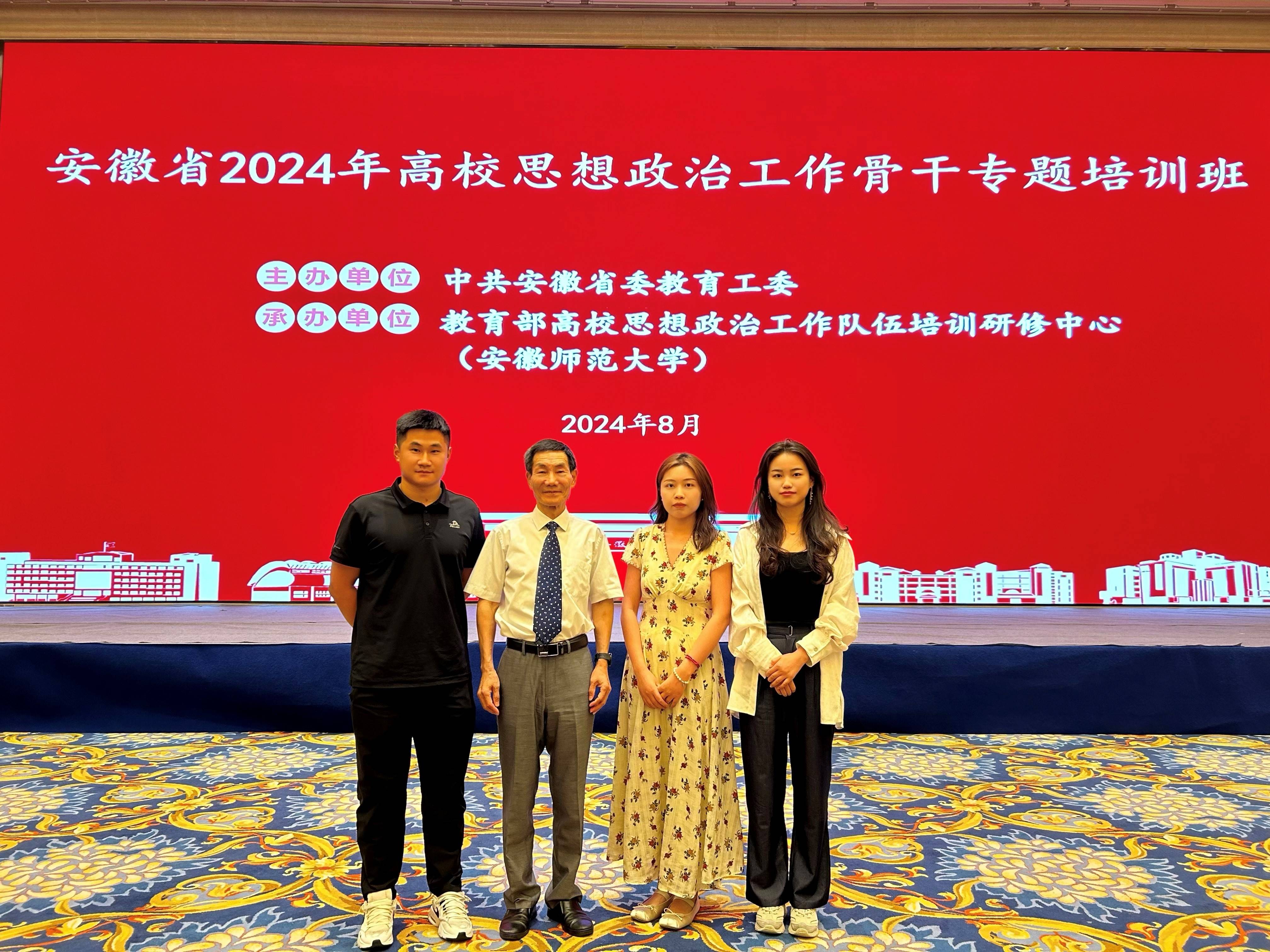 本网讯(通讯员:詹新宇)8月4日-6日,教育部高校思想政治工作队伍培训研修中心(安徽师范大学)在安徽芜湖举办“安徽省2024年高校思想政治工作骨干专题培训班”,beat365官网杨紫君、杨曼玉、詹新宇3名学工人员代表学校参加了此次培训。