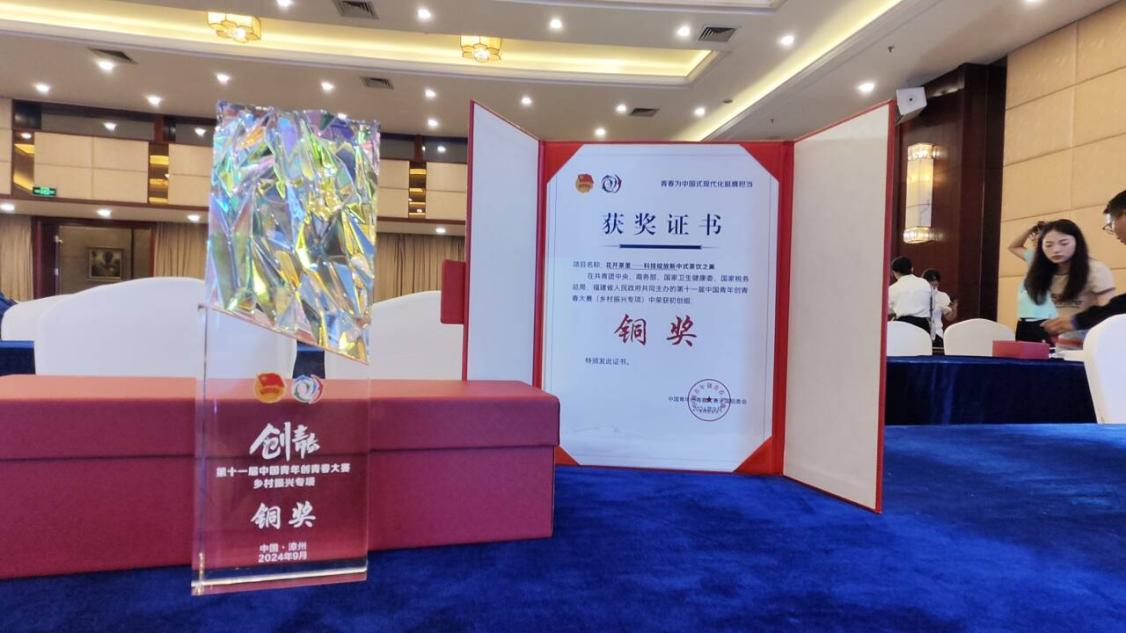 本网讯(通讯员:宋姣 张友爱)近日,由共青团中央、商务部、国家卫生健康委、国家税务总局和福建省人民政府共同主办,为期三天的第十一届中国青年创青春大赛乡村振兴专项全国总决赛与半决赛在福建漳州举行。由beat365官网大数据与人工智能学院学子张友爱为项目负责人的项目“花开茶里——科技绽放新中式茶饮之美”摘得全国铜奖。