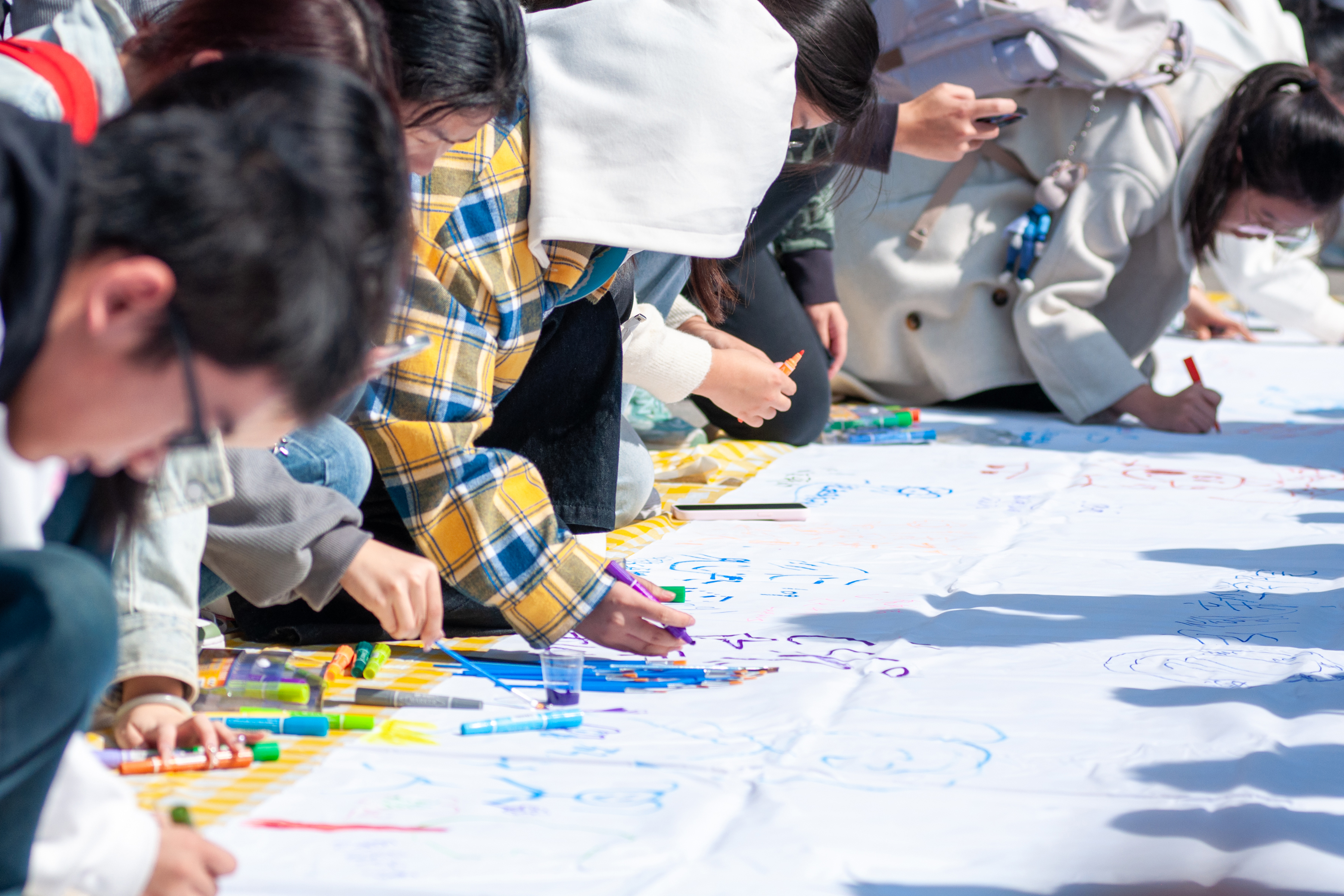 活动开始,学生代表曹薇发言,她呼吁每一位同学积极参与到活动中来,勇于表达自己的情感,分享自己的故事。何倍致开幕辞,她鼓励同学们积极参加形式多样的心理健康主题教育活动,希望通过活动放松心情、减轻压力,提高大家对精神卫生的认识,倡导健康的生活方式。随后,芮萍介绍了本次活动的背景及意义并宣布活动开幕,她号召同学们积极参加世界精神卫生日宣传月各项活动,共同营造一个关注心理健康、关爱彼此的良好氛围。现场氛围热烈。同学们席地而坐,发挥自己的想象力,完成手中亮点纷呈的作品。通过沉浸式参与各项活动,学生们体会到了心理健康的重要性,释放了压力,收获了快乐和放松,学会了感恩与交流合作。
