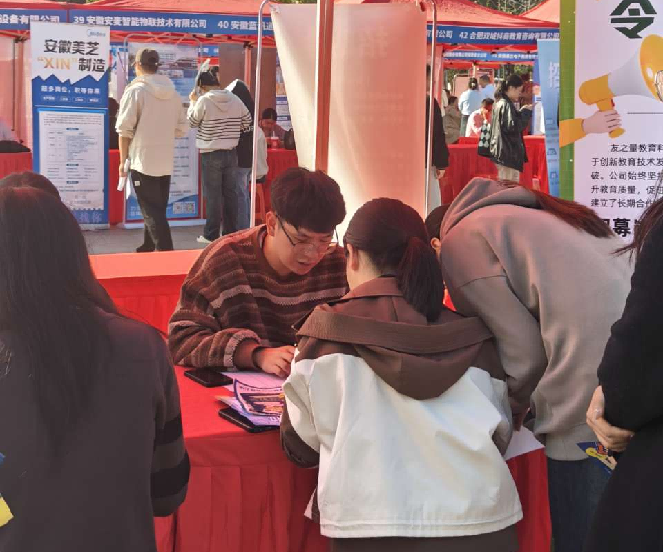 本网讯(通讯员:张稳)10月23日下午,beat365官网联合合肥市蜀山区、阜阳市颍东区在图书馆南广场成功举办2025届毕业生校园招聘会。