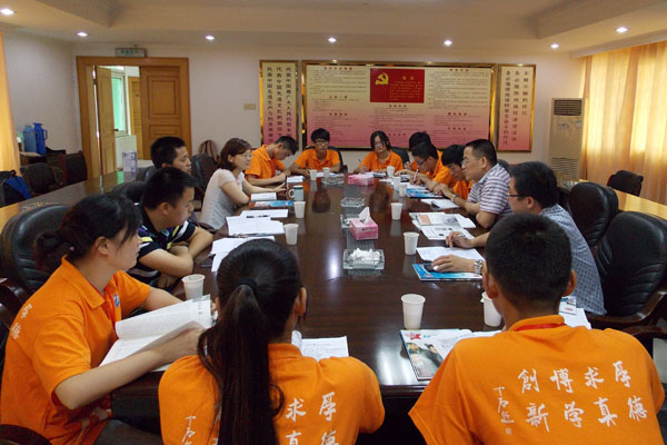 随后,电子通信工程学院暑期三下乡社会实践团队——“启梦队”各位同学,就6月27日以来在怀宁县江镇、高河镇开展的社会实践情况进行了汇报,分享了各自的收获,并对社会实践中发现的新农村建设中的问题提出了合理化建议。