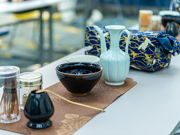 活动伊始,朱彦老师以“画与茶”为主题,为大家揭开了宋代茶文化的故事。“骤雨松声入鼎来,白云满碗花徘徊。”刘禹锡的这句诗便道出了仿宋茶百戏的意境。朱彦老师介绍道:“‘仿宋茶百戏’又名‘茶汤画’,顾名思义是在茶上作画,是一种能使茶汤纹脉形成物象的民间艺术。”这种液体表现字画的独特艺术形式,始见于唐,风行于宋,是中华文化自信的体现。宋代点茶知识的介绍让学生们对“仿宋茶百戏”的厚重历史和独特魅力有了深刻的认识。