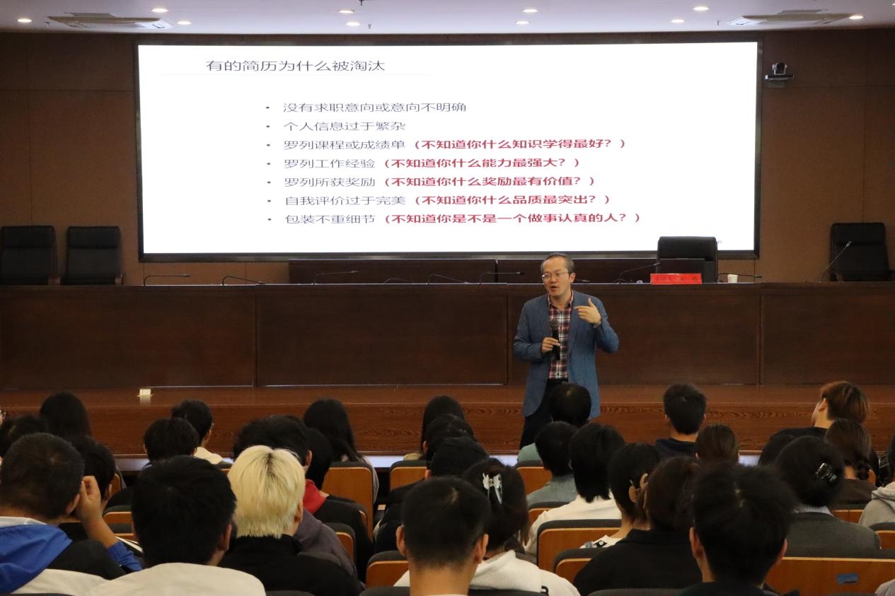 讲座从指导学生如何撰写一份吸引人的简历,突出自己的优势和特点,再到分享面试中常见的问题及应对策略,包括线上面试的注意事项,最后引导学生制定个人职业规划,明确短期和长期目标,提供职业发展的建议,鼓励学生不断学习和成长。