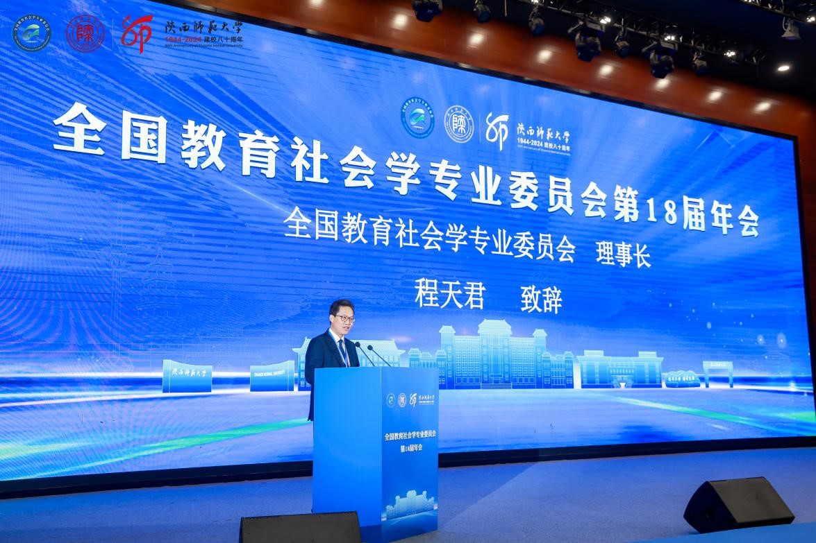 陕西师范大学校党委副书记卢胜利代表学校致辞。他谈到,本次会议是深入学习贯彻全国教育大会精神的重要举措,是对全球化时代、人工智能时代教育深刻变革的积极回应,必将为教育社会学研究注入新的澎湃活力。