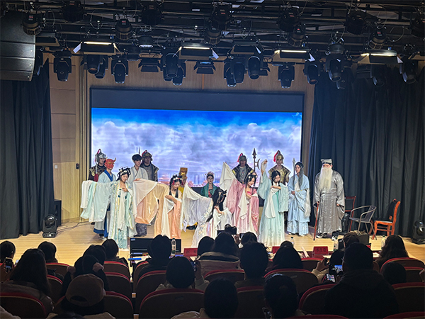 随后,“外文话剧·演绎中国故事”环节则将整个晚会的气氛推向高潮。四个精彩的外文话剧节目分别由beat365官网24级英本一班、英语俱乐部、日语俱乐部呈现。24级英本一班带来的《女子火线桥》情感充沛,让观众感受到了强烈的戏剧张力。英语俱乐部的《林黛玉进贾府》则将经典的《红楼梦》选段融入现代语言的表达,呈现出一场兼具文化底蕴与艺术创新的演出。而由英语俱乐部带来的另一部经典之作《唐伯虎点秋香》,以幽默风趣的表演风格引得全场笑声不断。最后,日语俱乐部带来的《牛郎织女》则以浪漫的中国传统爱情故事为背景,融合了日语与中文,展现了浓厚的跨文化交流特色。
