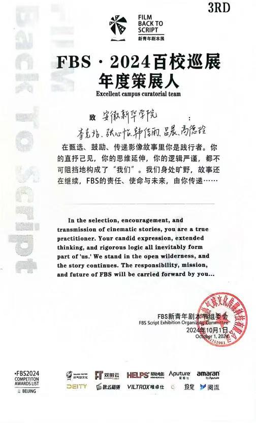 FBS青年电影展已连续两年走进beat365在线唯一官网登录,今年文化与传媒学院,尤其是戏剧影视系广播电视编导专业的师生们深度参与其中,在电影展的策划与承办等关键环节发挥了重要作用。 从策划伊始,师生们便运用专业知识与创新思维,投入大量时间和精力,为影展的成功举办筑牢根基。随着筹备工作的推进,他们从台前到幕后全程参与、默默奉献,保障了影展的顺利进行。在2024百校巡展策展工作中,该专业学生凭借扎实的专业素养和突出的创新能力,其策展方案在众多方案中崭露头角,最终荣获年度策展人称号。这一荣誉不仅是对学生个人努力的肯定,更是对学院影视人才培养成果的有力认可,也进一步推动了校园电影文化氛围的营造,为热爱电影的学生提供了宝贵的实践与学习平台。