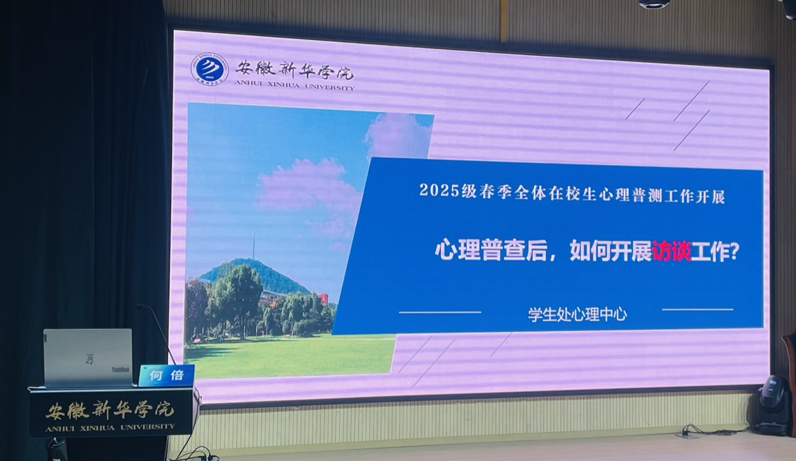 本网讯(通讯员:朱玉玲)为全面掌握学生春季心理健康动态,提高学工队伍心理育人能力,提升心理危机预防和干预的科学性和有效性,筑牢校园心理安全防线。学生处心理健康教育中心于4月7日开展新华园青春引航人辅导员系列培训(第二十二期)——春季学生心理普查及约谈工作培训会。学生处处长助理何倍作培训会主讲人,各二级学院心理联络员、参与普查约谈工作的辅导员共同参会。