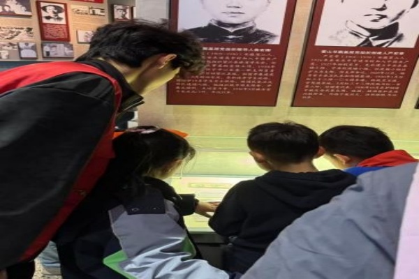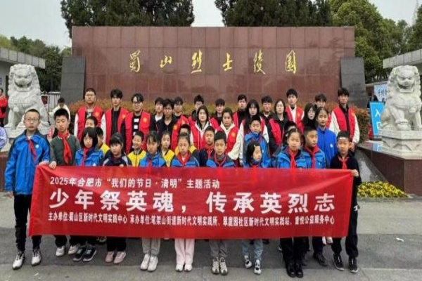 在大蜀山烈士陵园苍松掩映下,“星光筑梦志愿服务队”与50余名高校学子、中小学生共同举行“清明祭英烈”仪式,以敬献花篮、默哀追思、陈列馆研学等形式,构建从仪式教育到情景教学再到代际传承的红色课堂。“星光筑梦志愿服务队”带领30 名社区儿童开展"壁画里的党史" 艺术展导览、烈士事迹情景宣讲,让渡江战役烈士的英勇故事通过青少年的生动演绎走进人心。正如志愿者童传续在纪念碑前发言所说:"我们将红色基因转化为行走的思政教材,让革命精神在代际传递中永放光芒。"
