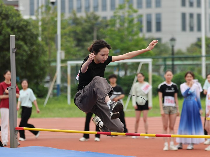 在女子跳高赛场上,来自财会与金融学院的石馨兰同学凭借出色表现斩获冠军。赛后,我们对这位同学进行了采访。谈及跳高成绩 126cm时,石馨兰同学说:“相比去年,今年的发挥略有逊色,不过依然凭借实力摘得桂冠!”在分享训练经验时,石馨兰同学说道:“坚持、不怕吃苦和克服恐惧是关键。”