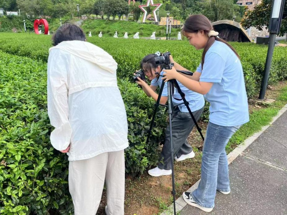 在文化与传媒学院团总支书记陈煜老师的带领下,实践团队深入舒城茶乡一线,切实将专业知识转化为服务乡村振兴的实际效能。实践队员精心策划并摄制了舒城“小兰花”地方特色名茶宣传片,凭借精湛的影像叙事能力,深度挖掘茶叶文化底蕴与地域特色优势,有效提升了品牌的社会知名度,拓宽了产品市场销售渠道,为当地茶产业发展注入了青春动能。在拍摄过程中,实践队员不仅全方位记录茶园自然风光与传统制茶工艺,还深入茶园种植与茶叶加工一线,完整呈现生产全流程,充分展现茶乡独特风貌。此外,在完成拍摄任务后,实践队员主动协助茶农开展农业生产工作,充分彰显了新时代大学生的责任担当。
