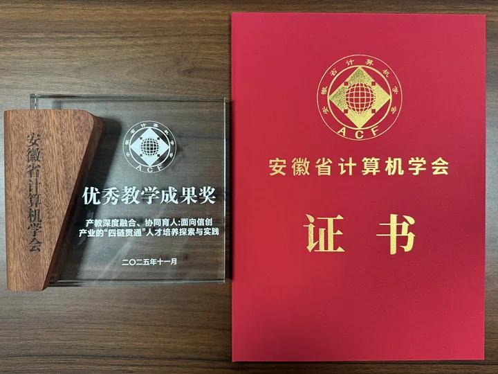 此外,大会还颁发了2025年度“安徽省计算机学会优秀青年科学家”、“安徽省计算机学会教学成果激励计划”、“安徽省计算机学会优秀博士学位论文”等奖项,以表彰在计算机科学领域做出杰出贡献的个人和团队。其中,我院获批《产教深度融合、协同育人:面向信创产业的“四链贯通”人才培养探索与实践》教学成果;2025届毕业生夏修倩的毕业论文《基于TCN-BiLSTM模型的地铁客流量预测方法的研究与应用》荣获“安徽省计算机学会优秀本科毕业设计(论文)”。