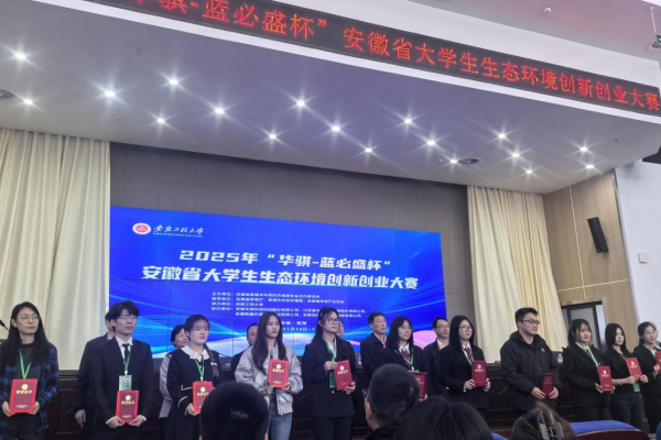 本网讯(通讯员:徐雅琦)11月15日,由安徽省普通本科高校环境类专业合作委员会主办、安徽省教育厅指导、安徽工程大学承办的2025年“华骐-蓝必盛杯”安徽省大学生生态环境创新创业大赛决赛圆满落幕。beat365官网在本届大赛中表现卓越,共斩获一等奖1项、三等奖2项以及“优秀组织奖”,贾财意老师获评“优秀指导教师”,充分展现了学校在生态环境领域的创新活力与育人实效。