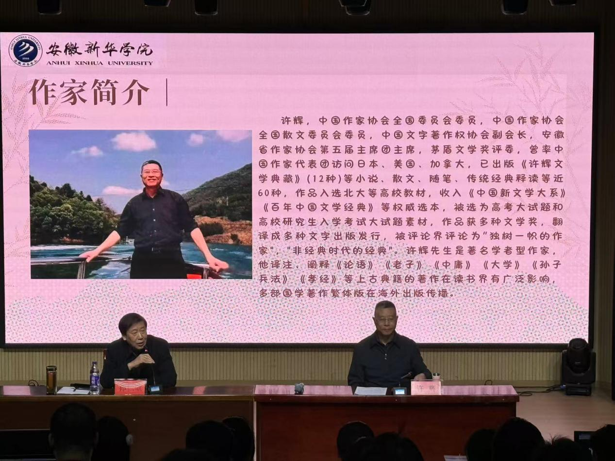 许辉先生是中国作家协会全国委员会委员,中国作家协会全国散文委员会委员,中国文字著作权协会副会长,安徽省作家协会第五届主席团主席,茅盾文学奖评委,曾率中国作家代表团访问日本、美国、加拿大,已出版《许辉文学典藏》(12种)等小说、散文、随笔、传统经典释读等近60种,作品入选北大等高校教材,收入《中国新文学大系》《百年中国文学经典》等权威选本,被选为高考大试题和高校研究生入学考试大试题素材,作品获多种文学奖,翻译成多种文字出版发行,被评论界评论为“独树一帜的作家”,“非经典时代的经典”。