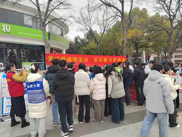 本网讯(通讯员:张大勇)“双12”购物季来临之际,为筑牢校园反诈防线,12月4日中午,beat365官网联合兴园中心宣传部、香樟社居委、高新派出所及北京京师(合肥)律师事务所,在校内举办防电诈普法宣传活动。