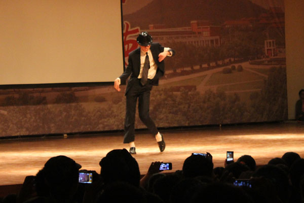 晚会形式多样,异彩纷呈。活力四射的乐队开场、动感十足的街舞、幽默风趣的相声、魅力无限的模特走秀、笑点十足的雷人舞将场观众带进了“艺术的殿堂”。而歌曲串烧、器乐合奏、民族舞蹈也是当仁不让,让2013级新生尽情领略了学长学姐的风采。鲜艳美丽的长裙随着音乐一起舞动,民族舞蹈让同学们感受到了民族舞特色之所在。“万事沧桑唯有爱是美丽的神话”,一曲优美动听的乐器合奏《美丽的神话》将小提琴、钢琴、琵琶、手风琴、二胡、古筝完美地结合在一起。中国达人秀安徽赛区冠军管研老师为新生献上精彩的POPIN舞蹈,博得无数掌声和尖叫声。