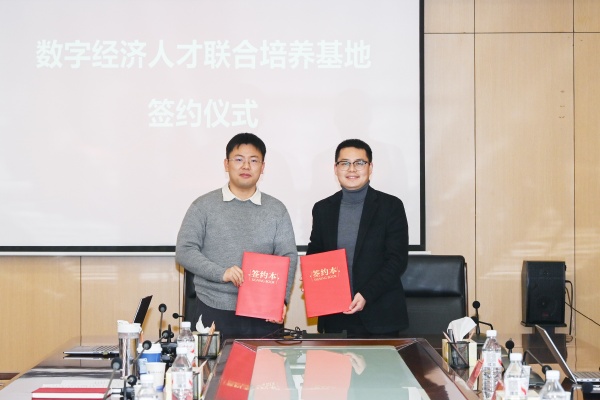 随后,吴山与王古月代表双方签署“数字经济人才联合培养基地”合作协议。
