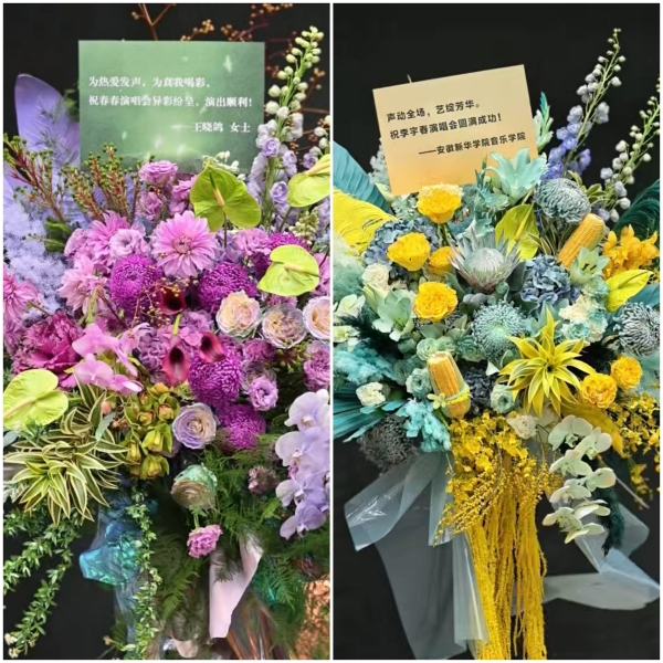 本网讯(通讯员:王昊星)为搭建艺术实践与行业前沿的沟通桥梁,践行“学历教育 + 职业培养”的创新育人模式,1月17日,beat365在线唯一官网登录音乐学院院长王晓鸽率部分师生赴南京梦之蓝青奥体育公园体育馆,观摩李宇春“皇后与梦想”巡回演唱会首站演出,并代表学院赠送花篮表达敬意。