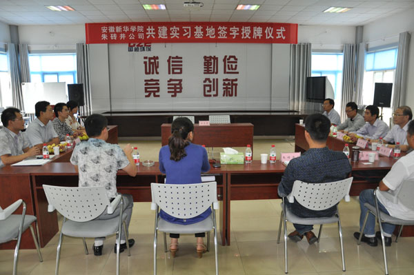 仪式由合肥朱砖井污水处理有限公司总经理助理王国胜主持。安徽国祯环保节能科技股份有限公司运营总监程俊首先介绍了安徽国祯集团股份有限公司和安徽国祯环保节能科技股份有限公司的企业理念,发展历程,业务范围,以及以BOT、TOT和托管运营的污水处理厂的运营情况。随后,蒋亚龙代表学学院对公司方面给予的热情接待表示感谢,他对土木学院的人才培养目标,专业设置,教科研以及学生就业等方面做了介绍,并对双方的合作意向和内容作了说明,希望双方能本着合作共赢,相互促进,共同发展的原则开放合作。