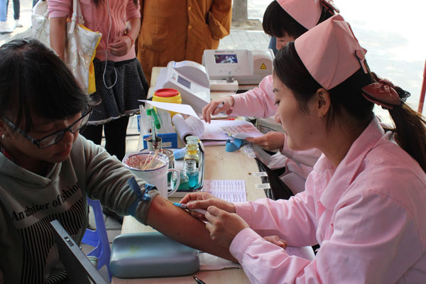 此次活动受到广大师生关注,不少热情高涨的同学们在活动正式开始前就陆续到场进行体检和验血。青年志愿者们更是早早地布置好了场地,纷纷加入到义务献血后勤服务行列中,整个献血过程井然有序。在献血活动现场,青年志愿者协会成员曹恒健表示,现场所有服务人员均是自愿报名参与其中的。文化与新闻传播学院2013新闻采编与制作专业的董雪伟说:“我一直都想参加义务献血活动,这次终于有机会了。”他认为适当的义务献血不仅仅是一项公益活动,有利于回馈社会,挽救生命,对献血者本人来说也是无益。