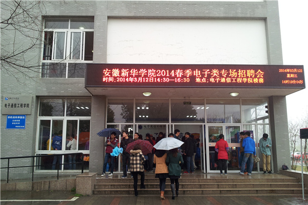 本网讯(吴晶)3月12日下午,电子通信工程学院举办2014年春季电子类专场招聘会。此次招聘会邀请了通威太阳能(合肥)有限公司、中国电子科技集团公司第三十八研究所——合肥博微田村电气有限公司、广东长实通信股份有限公司安徽分公司等15家企业,共为毕业生提供了200多个就业岗位。本次招聘会涵盖了技术研发、质量检测、产品销售等领域,吸引了200余名同学前来现场应聘。