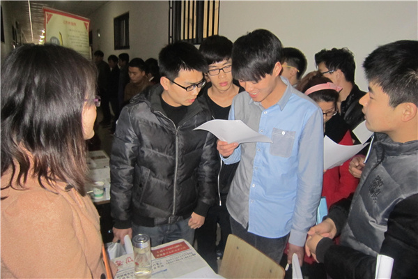 招聘会现场,同学们手持精心准备好的自荐书和简历积极与企业招聘人员交流,用人单位对简历作了初步筛选,并对部分同学进行了简短面试。招聘会还吸引了部分2015届毕业生前来学习观摩,了解企业用人标准,寻找自身的差距,为自己日后的择业做好准备。