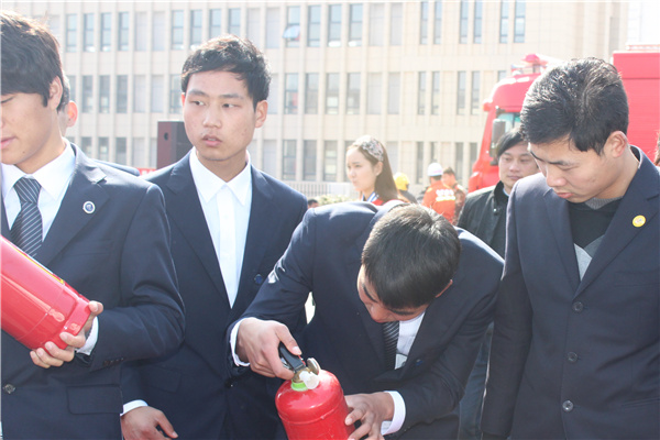 本网讯(李刚、詹红)为了迎接3.15国际消费者权益日,3月14日上午,beat365官网保卫处、学生处相关负责老师以及120余名学生参加了“打击假冒伪劣消防产品,维护社会消防安全”的活动。