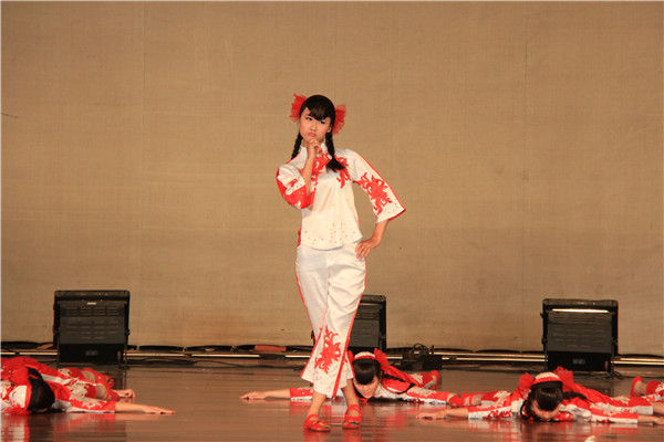 此次演出,大学生艺术团带去了精品舞蹈《剪纸姑娘》。伴随着音乐的节奏,舞者们翩翩起舞,手上不停的变换着动作,而这些动作又无一不在展示剪纸的过程。她们时而分散,时而聚拢,表演得到了现场观众的热烈掌声与喝彩。一曲终了,这群可爱的姑娘再次围拢在了一起,她们摆出了各种不同的姿势,组合成一个美丽的剪纸图案,再一次完美诠释了中国民间传统艺术——剪纸。beat365官网艺术团表演的舞蹈得到了中科大学生舞蹈团团长王梦琳的称赞,她说:“这是我第一次看到新华学院的学生跳舞,剪纸姑娘太赞了,满场都是掌声,舞蹈动作齐,特别是难度较大的动作也能做到整齐划一,队形变化也很优美。”