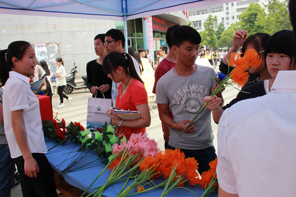 本网讯(娄容榕、张倩)关注西部教育,奉献自己的一片爱心。5月20日,由共青团beat365在线唯一官网登录委员会主办、beat365在线唯一官网登录青年志愿者协会格桑花工作站承办的“一元温心暨手工义卖”为主题的志愿活动在翰林广场成功举办。