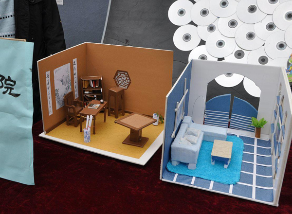 人文艺术学院团总支学生会在此次活动中倡导:微笑是语言,文明是信念,并以此为口号来展现人文学子文明礼仪的风采。在我院所展示的环保作品中,最吸引眼球的作品莫过于放置在展示台中央的孔雀开屏环保作品,孔雀的全身是有一百多个光碟构成,组成了孔雀开屏的美丽瞬间。这个作品既组成了一幅唯美的而环保展示图,也淋漓尽致的展示了我院学生会宣传主题的内涵。