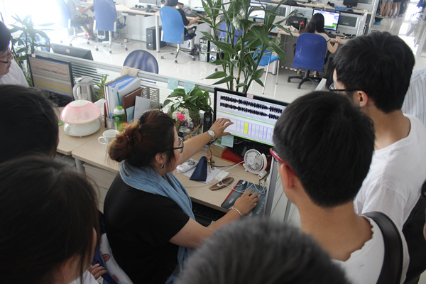 群音公司负责人带领学生参观了实习基地。在专人的指导讲解下,学生进行了观摩学习。在观摩学习中,学生对自然语言、语音合成、语音评测、语音识别、网络标注等语音数据处理有了初步了解,表现出极大的兴趣,收获颇丰。整个认知实习活动在愉快的氛围中结束。