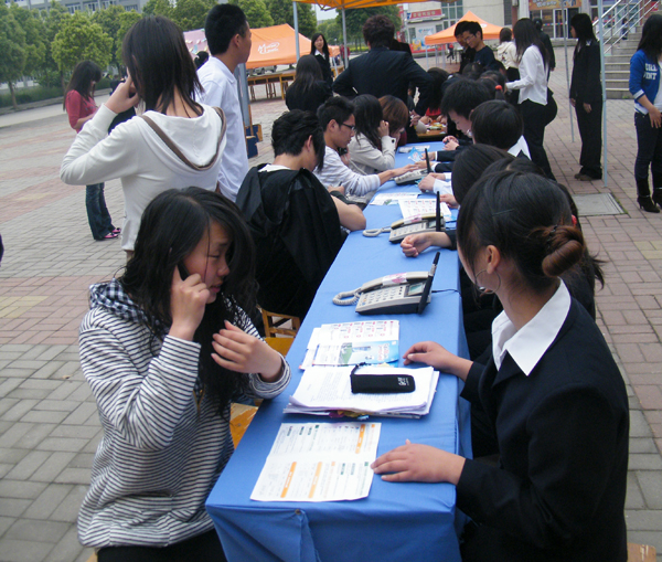 “电话传情不限时,视频寄爱三分钟”。活动现场,主办方特意设置了3台固定电话、3部手机和7台电脑,同学们可以给母亲打电话、用无线宽带进行视频通话,还可以将对母亲祝福的话语写在小纸条上,张贴在一起,汇聚成一堵充满温情的“祝福墙”。