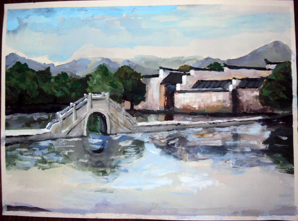写生期间,大家一同作画,彼此间相互交流,在交流中,同学们共同学习、共同提高。指导老师在返校后讲到,学生每天要完成五张速写,一张水粉,而且每位同学都能认真完成每一幅作品,晚上做集中讲评,以便学生能及时了解自己作品的长短之处。从同学们的作品中,指导老师能看出他们的认真态度和用心程度。