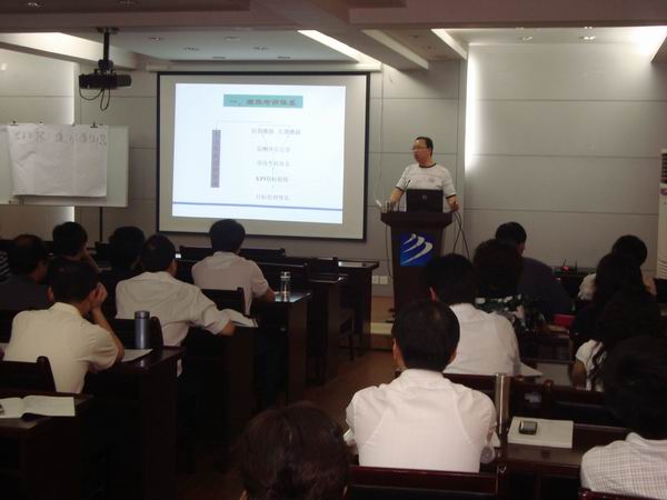 姚院长以“你的工资谁作主”引出绩效的概念,并分别从绩效考评的基础、目标管理的思想与特点、目标体系及分解流程图、目标设定的基本原则、考核量表设计、考核制度设计六个方面进行了详细的阐述,尤其对考核项目的确定、KPI指标的提炼、考核指标的量化、指标权重与考核主体确定等进行了重点辅导。培训师生动的案例、准确精练的语言赢得学员阵阵掌声,学员在轻松愉悦的氛围中认真感受、深入思考。
