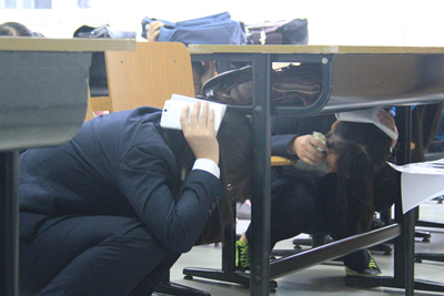 11:26分应急警报拉响,授课老师迅速指导学生在教室紧急避震,一分钟后警报停止,“地震警报”解除,老师指导学生向教学楼外安全区域疏散,整个流程历时3分钟。