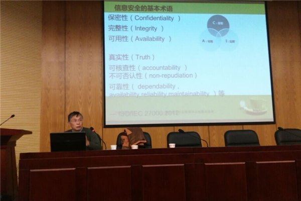 报告会上,蒋凡教授介绍了信息安全管理体系基础、ISO2700X系列标准、如何策划信息安全管理体系框架和实施信息安全管理体系的流程等四个方面的内容。蒋凡教授渊博的专业知识及生动的讲解调动了在场师生的积极性,得到大家一致好评。