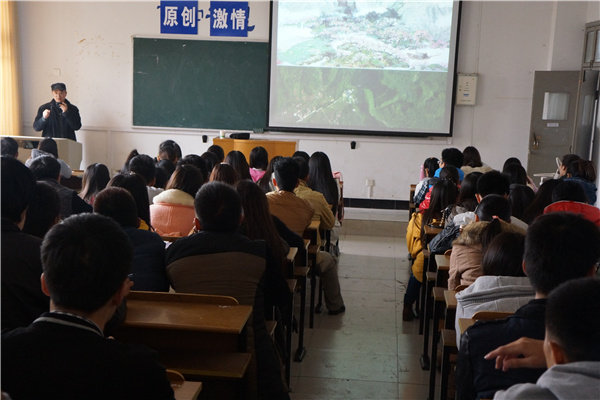 本网讯(刘丹)11月19日下午,安徽承宏设计顾问有限公司高级工程师张承宏为动漫学院师生作了一场以安徽艺术设计特色为内容的报告会。来自艺术设计专业、环境设计专业、视觉传达专业和产品设计专业的近两百名同学参加了此次报告会。