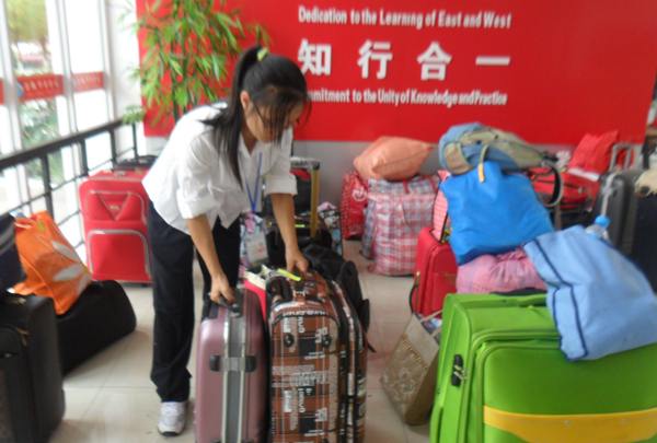 看到新生和家长们脸上满意的笑容,外语学院迎新人员每一个人都露出会心的微笑。