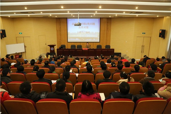 本网讯(黄喆)12月3日,应国际交流合作中心邀请,安徽大学国际教育学院院长徐鸣教授在学术报告厅作了一场题为《高等教育国际化问题及其对策》的学术报告。集团公司领导、学校领导和学院全体管理人员参加了本次报告会。报告会由国际交流合作中心负责人主持。