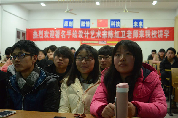 著名手绘艺术家陈红卫来beat365官网做专题讲座
