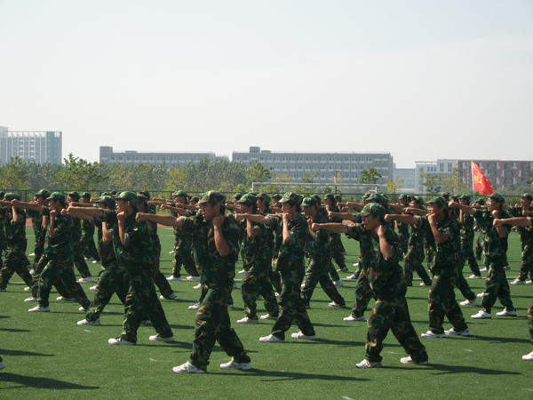 我院2010级学生此次军训自9月5日开始,9月21日结束,历时18天。其间无论炎热高温,还是连绵阴雨,参训的全体学生都始终保持高度的热情,严格认真地完成了各项训练任务;无论日常队列练习,还是站军姿,分列式等,都一板一眼,按照军训教官的指挥和要求完成。在队列抽查考核中,取得了良好的成绩。