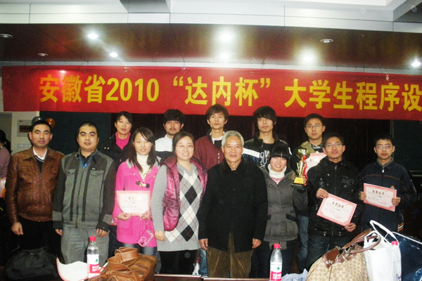 本次程序设计大赛由安徽省高等学校计算机教育研究会主办,合肥工业大学承办。安徽大学、安徽师范大学等共20余所高校、近60支代表队参加该赛事。程序设计题目涵盖了程序设计语言数据结构和计算机算法,参赛的同学们按照自己能力完成各题目。大赛采用ACM评分规则,网上实时提交,由PC~2系统自动判评,在五个小时的比赛过程中,经过激烈紧张角逐,我院T3队喜获一等奖。(文/祝静静,图/祝静静)