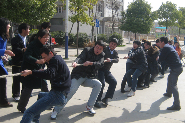 12月28日中午,阳光明媚,信息工程学院教学楼前气氛热烈,十分热闹。全体教职工集聚一起,开展了2010年末教职工拔河比赛。