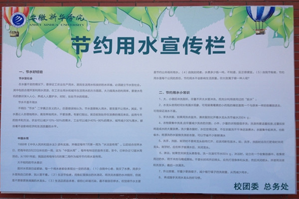 通过此次“节水宣传周”活动的开展,让全校师生充分了解并认识到节约用水的重要性,强化了师生节水意识,促使beat365官网节水工作水平进一步提高。