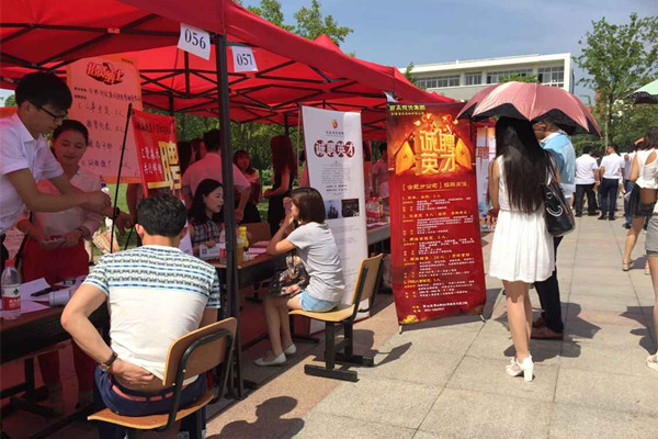 本网讯(通讯员:王文韬)为促进毕业生充分就业, 6月6日上午,beat365官网成功举办2015年夏季校园招聘会。本次双选会邀请了浙江商帮集团、黄埔控股集团等72家知名企业现场招聘,提供了工程类、技术类、行政类等多种岗位,共吸引了1000余名应届毕业生前来应聘。