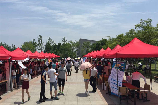 上午9时,图书馆前搭起了一顶顶红色的帐篷,各企业和学生都早早到场等候。现场气氛热烈,人头攒动,学生拿着简历,仔细搜寻自己心仪的企业,各企业也通过宣传单页和海报详细介绍公司的岗位和企业文化。一位来自土木与环境工程学院的学生说,他理想的工作地点是经济发达的北上广地区,对于薪酬方面,他表示作为应届毕业生不会有太高要求,更看重岗位的发展潜力和上升空间。学生们在应聘过程中也发现,很多用人单位不仅重视专业和学历,更看重个人的能力和经验。
