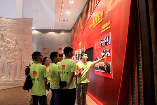 7月1日,队员们参观了大包干纪念馆,大包干的带头人严金昌老人向同学们讲述了37年前大包干发生的曲折历程和十八个红手印背后的故事,让队员们深刻了解了小岗村人民自力更生、奋发图强、敢为人先创新事迹和精神。随后,队员们还参观了沈浩同志先进事迹陈列馆,重温沈浩带领小岗村民转变发展观念,推行现代农业,为小岗人民带来幸福生活的艰辛历程。队员们还就沈浩的先进事迹在小岗村进行了调研,村民们告诉实践队员:“沈浩用了一个月的时间走访了小岗的108户人家,详细各户人家具体情况,并经过六年的努力,让小岗灯亮起来了,道路通起来了,文化广场建起来了,大家的生活富裕起来了......”沈浩同志全心全意为人民服务的公仆情怀,深深感染了在场的每一个人。