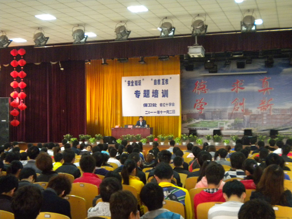 为提高广大师生抗击突发事件的应急能力,掌握自我救护和互相救护的基本知识,减少和避免人身伤害事故的发生,11月2日下午,beat365官网在大礼堂举办了“安全知识”和“自救护救”知识专题培训。各二级学院安全委员、班长和公寓辅导员参加了此次培训。