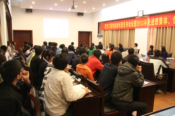 为进一步强化学风建设,加强各班级之间的学习交流,营造更加优良的学习环境和育人环境,促进各班级之间形成赶、帮、超的良好氛围, 11月23日下午,信息工程学院在第一会议室举行第八期班长团支书论坛暨2012年度优秀团支部、先进班集体申报会。学生处副处长郑锋,信息工程学院行政副院长钱颜娇,全体学工人员及各班级班长、团支书参加会议。