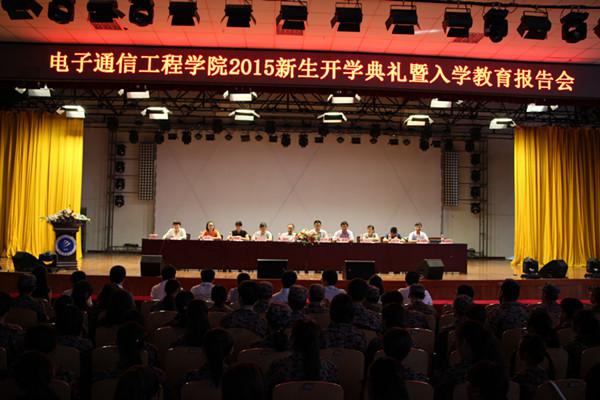 9月7日上午,电子通信工程学院在学校大礼堂举行了2015级新生开学典礼暨入学教育报告会。院长卢胜在总结讲话中讲述了学院的发展历史及学院在教学、科研等方面取得的好成绩。典礼仪式结束后,副院长钱颜娇做了“从尽力而为向竭尽全力的嬗变”主题报告会。